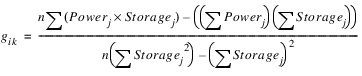 FOR EACH combination of Spill and Tailwater Base Value (or Downstream Storage), k, perform a linear regression to calculate a temporary Storage coefficient gik: