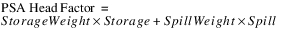 Description: The weights for Storage, Spill and Downstream Storage used when calculating PSA Head Factor