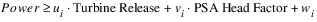 Information: This variable is used in the automatically generated constraints that define Power. It will not, generally display any values, but the user can write a post-optimization rule that calculates the value of this variable at each time step using the equation shown below and the values in the PSA Head Factor Weights table slot.