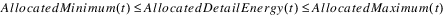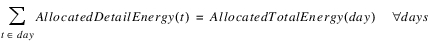The Allocated Detail Energy is further constrained to meet periodic totals where the period is a multiple of the timesteps of the run. For example, a model with a 6 Hour timestep, might have a total daily energy target. More generally, the period is specified by the timesteps with non-zero values for Allocated Total Energy. The Allocated Detail Energy is required to meet the totals. For a daily period the constraint is: