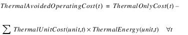 Additional terms are available for writing more complex objective functions. In this method, Avoided Operating Cost is defined as the reduction in the cost of thermal generation, the thermal costs of meeting the load with only thermal sources minus the cost of a combined hydropower and thermal solution.