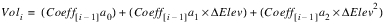 Sediment Functions) to generate a series of coefficient arrays. These coefficient values are then used in the following polynomial equation to calculate incremental volumes at given elevation points: