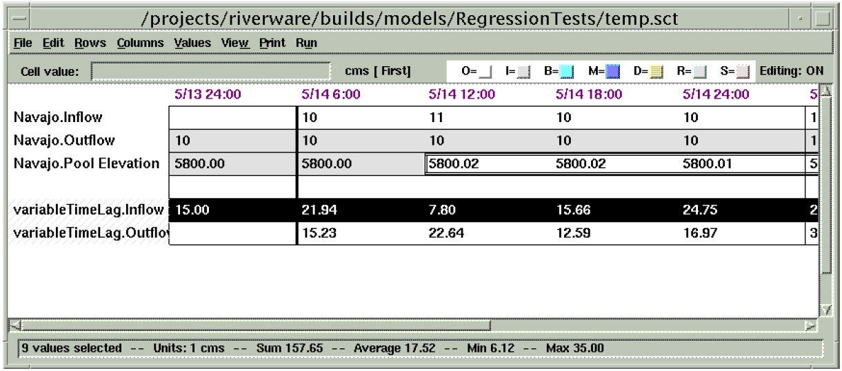 The SCT dialog now shows simple statistical calculations for a group of selected values. If the user highlights/selects a group of cells, the window at the bottom of the SCT will show the number of values selected, the units, sum, average, min and max (see dialog below for an example).