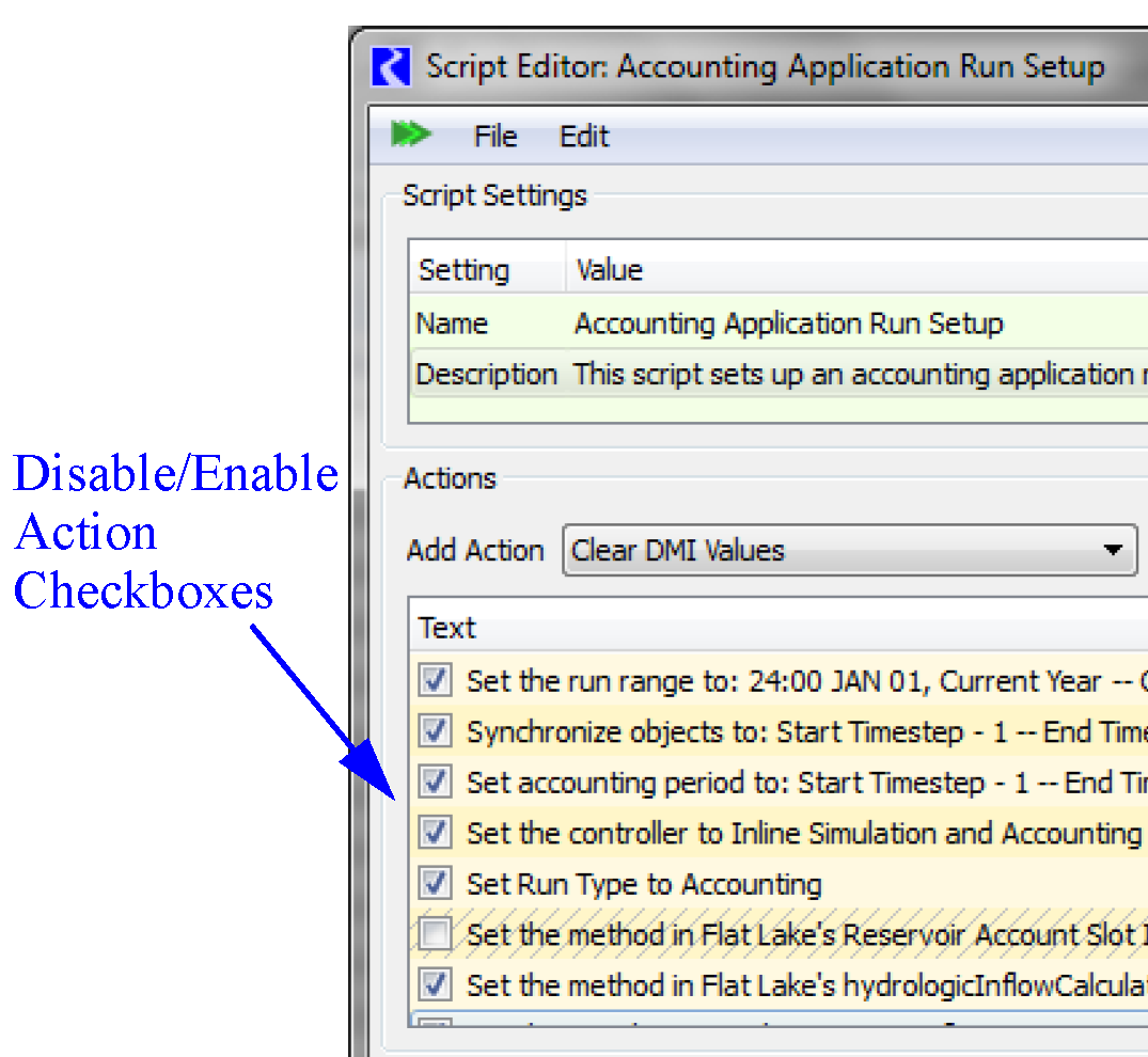 Now, action enabledness can also be controlled in the Script Editor with checkboxes now appearing with each action item. Action enabledness is now part of the script configuration, and persists when applied from the Script Editor and if the model is saved to a model file.
