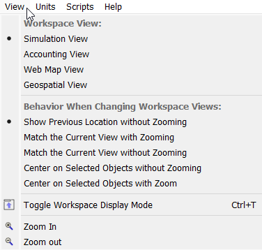 Figure 5.15 Screenshot of new workspace View menu