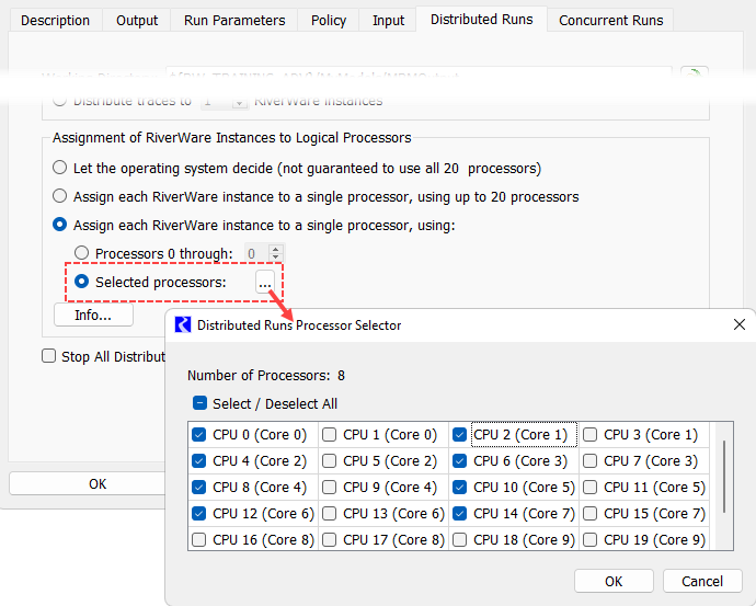 The Distributed MRM configuration now allows you to assign RiverWare instances to specific processors. This can improve processor utilization during Distributed Runs. For more information, see the