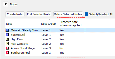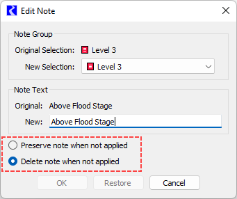When a note is created from the Note Manager, the Preserve note when not applied option is selected by default. When a note is created from a slot or from a SCT, the Delete note when not applied option is selected by default. The selection can be changed by editing the note.