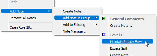 Figure 4.23 Context menu showing add notes options