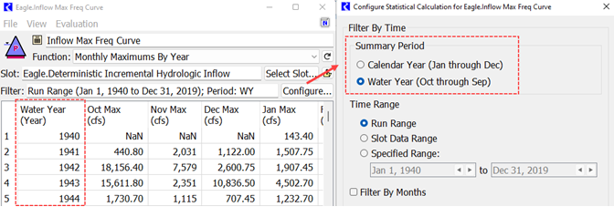 Figure 4.25 Statistical Slot with Water Year configuration