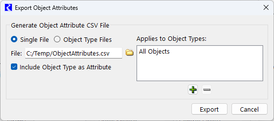 Figure 1.11 Screenshot of Export Object Attributes.