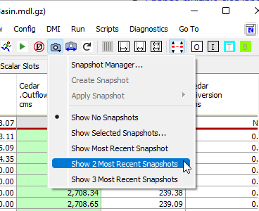 The SCT can be configured to show slots from snapshot objects together with their source slots. This can allow you to quickly see the values for a slot from previous runs together with the current values on the slot. See Snapshots in Output Utilities and Data Visualization for more information on snapshots.