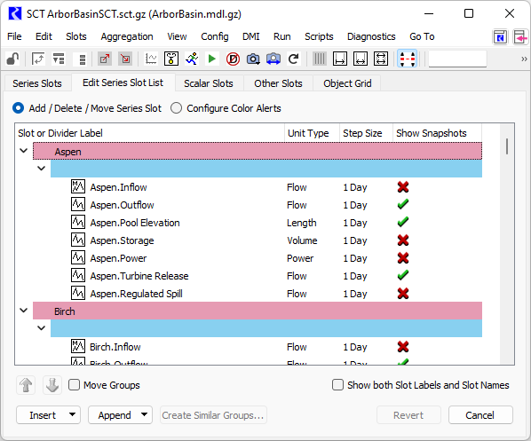 • Append Slots—opens the Select more Slots for an SCT window, allowing you to select slots to add.