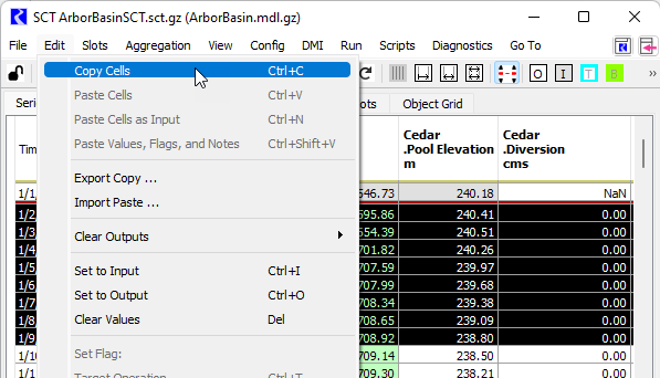 Note: The target must be within the same SCT as the source; you cannot paste values at a timestep across all slots to a different SCT.