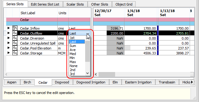 In aggregated horizontal timestep view, if the Show Column: Aggregation Summary Function setting is enabled, you can use the following alternate method to select the summary function; see Configure horizontal timestep display for details on enabling this column.