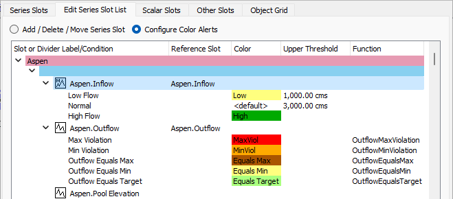 8. After pasting the Color Alert configuration, you can then edit individual settings to define conditions and colors that are unique to this slot, if you want.