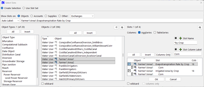 Following is an example of how this could be used: A user configures 5 agg series slots to contain crop water requirements for 10 different crops. (5 slots * 10 columns = 50 timeseries) When creating a name map for use in importing via the database DMI, the user sets the filter to select each of the columns that are labeled “Crop 1” across the multiple slots. The user can then specify that “Crop 1” maps to “corn” in the database Name Map. This enables the user to set up only 10 Name Maps, one for each crop, instead of the 50 that were previously required.
