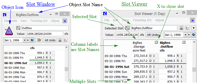 There is one Slot Viewer for each timestep (1 Day, 1 Month, and so on) per model. There can be many Slot dialogs.