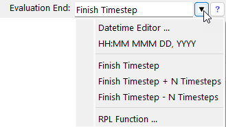 5. Optionally, enable automatic end of run evaluations. The Evaluate at end of run checkbox controls whether this slot is automatically evaluated (recalculated) at the end of the run. The end of run evaluations are performed after all end of run RPL Expression Slot evaluations. (So, it would be reasonable for a Time Series Disaggregation Slot to disaggregate an “end of run” RPL Expression Series Slot).