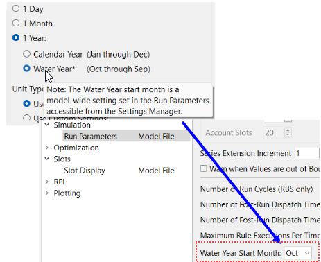 Water Year Start Month is a model-wide setting, configured in the Settings Manager and then Run Parameters page. see