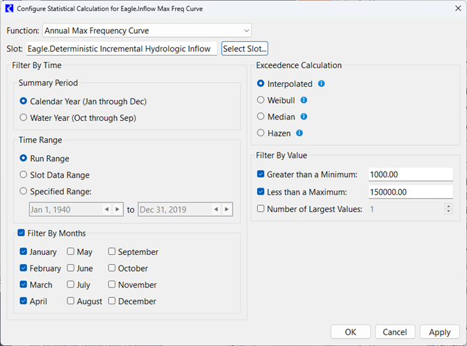 Time Aggregation Series Slots temporally aggregate another series slot. For example, you might aggregate a daily flow to an annual average. They can be recomputed manually or automatically at the end of a run. The configuration of a Time Aggregation Series Slot includes the following properties.