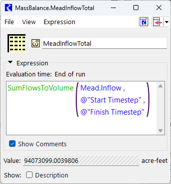 Series Expression Slot | | Series | A specialized Series Slot whose value is computed from a user-defined arithmetic expression possibly containing other slot names as variables. They are used to calculate quantities such as “combined Storage of all Reservoirs.” |
