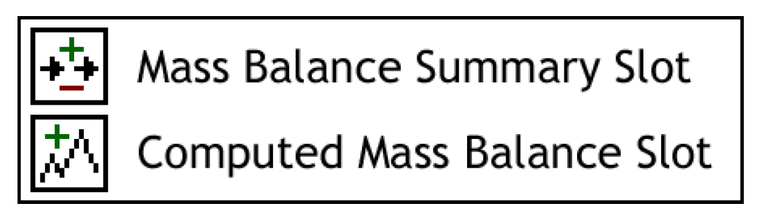 Mass Balance Summary | | Mass Balance Summary | The mass balance summary slot is a user-defined hierarchy of series slot collections used to check mass balance across many objects. |