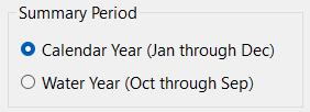 Note: The resulting series with a 1 Year timestep is still nominally identified as a calendar year (ending on December 31). Water years are named by the year in which the water year ends, i.e. a water year from October 2000 through September 2001 is the “2001” water year.