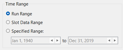 6. Optionally, enable automatic end of run evaluations. The Evaluate at end of run checkbox controls whether this slot is automatically evaluated (recalculated) at the end of the run. The end of run evaluations are performed after all end of run RPL Expression Slot evaluations. (So, it would be reasonable for a Time Series Aggregation Slot to aggregate an “end of run” RPL Expression Series Slot).