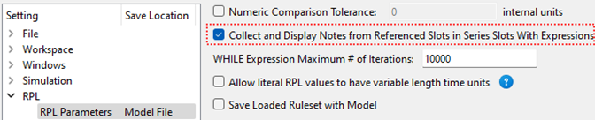 The collection of notes for series with expressions is optional and is controlled on a model-wide basis by a RPL Parameter. Access this setting in the Settings Manager from the Policy and then RPL Parameters menu.