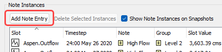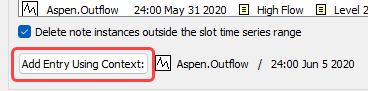 – If the Note Manager was opened from a slot dialog, Series Slot Viewer or SCT, select the Add Entry Using Context button at the bottom of the Note Instances panel. This option is only available if the Note Manager was opened from the shortcut menu on a slot timestep.