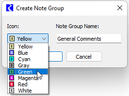3. In the Note Group menu, select the Note Group to which the new note will belong. This will define the color of the icon that is displayed for the note.