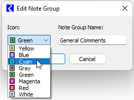 3. To change the color of the icon associated with the Note Group, select a new icon color from the Icon menu.