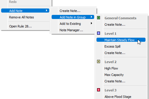 3. Right-click on one of the selected timesteps, and move the cursor over Add Note in the shortcut menu. Four options will appear.
