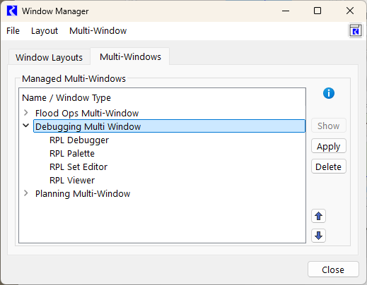 Figure 2.5 Screenshot of the Window Manager showing the Window Layouts tab