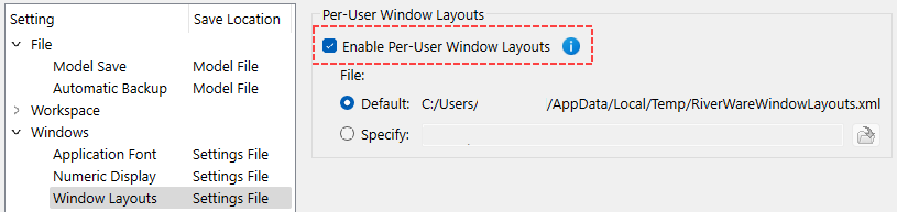 • Per-User Window Layouts: Save the layout to a separate file for use in any model or RiverWare session. In