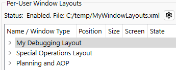 Once the Per-User layouts are enabled in the settings manger, then the Window Manager shows the layouts as shown below with the indication it is enabled and the File path: