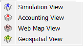 | Switch between the Simulation View, Accounting View (if enabled), Web Map View and the Geospatial View | |