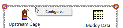 Each item is added to the workspace. Once created, position them on the workspace. Configure the colors, line types, fonts, and so forth using the Output Canvas. Quick access to the Output Canvas configuration is provided by right-click options on the item. For example, to configure a rectangle, right-click on the border and select Configure as shown below: