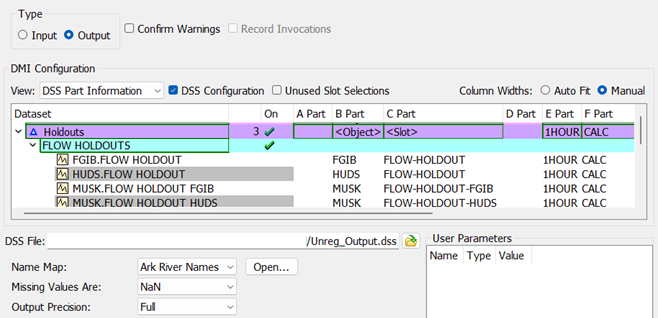 8. Once the MRM is finished, run a DMI to output all reservoir and control point holdouts to the DSS file. The Database DMI will use the name maps as necessary (