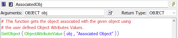 Figure 4.8 This function gets the associated data or simulation object using object attributes