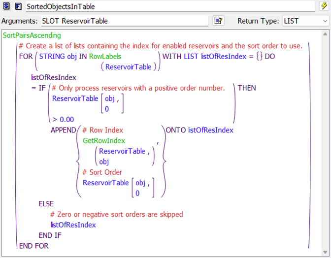 Figure 4.9 This function gets the sorted list of reservoirs to process