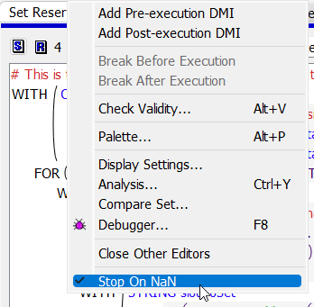 Rule 4 has stop on NaN set to stop the run if there are missing values. With this parameter set, an error will be posted if a NaN is encountered. The message will say the slot and the timestep at which the NaN is found.