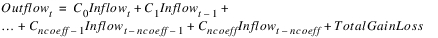 This equation is used to calculate the current and future outflows (from t = current to t = number of coeffs). All of the C values are calculated outside of the model and for each set of coefficients, the C values sum to 1.0.