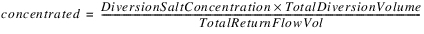 The method converts Total Return Flow and Total Diversion from a flow to a volume (TotalReturnFlowVol and TotalDiversionVol). The local variable concentrated is computed as follows.