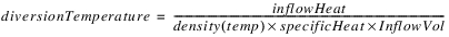 First, if the previous Diversion Temperature is not valid, set a local variable temp to 10deg Celsius. Otherwise, set temp to the previous Diversion Temperature. This value is used to compute the density of the water. If the current Diversion Temperature is not valid, set it to: