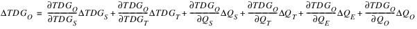 The partial derivatives are defined as follows. All of these derivatives are calculated for each timestep and therefore are based on the values computed during the previous rulebased simulation (which used the estimated values, QS*, QT*, and so on).