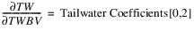 dTailwater dTailwaterBaseValue | None | Partial derivative of Tailwater with respect to Tailwater Base Value. Computed based on the selected Tailwater method. |