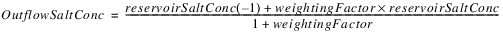 The outflow salt mass and concentration is calculated based on the outflow volume, and the epilimnion and hypolimnion concentration in segment N. The following equations calculated the outflow salinity: