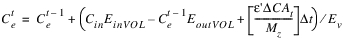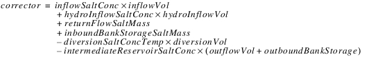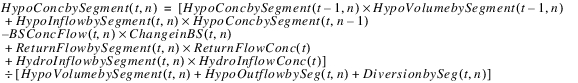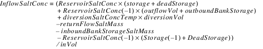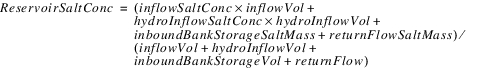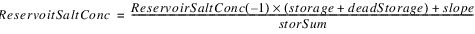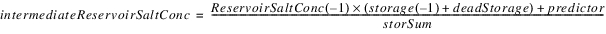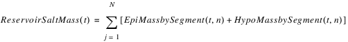 The reservoir salt mass is calculated based on the concentration and volume in each segment. The following equations calculated the reservoir salt mass: