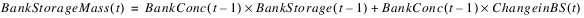 The bank storage salt concentration is computed as follows: